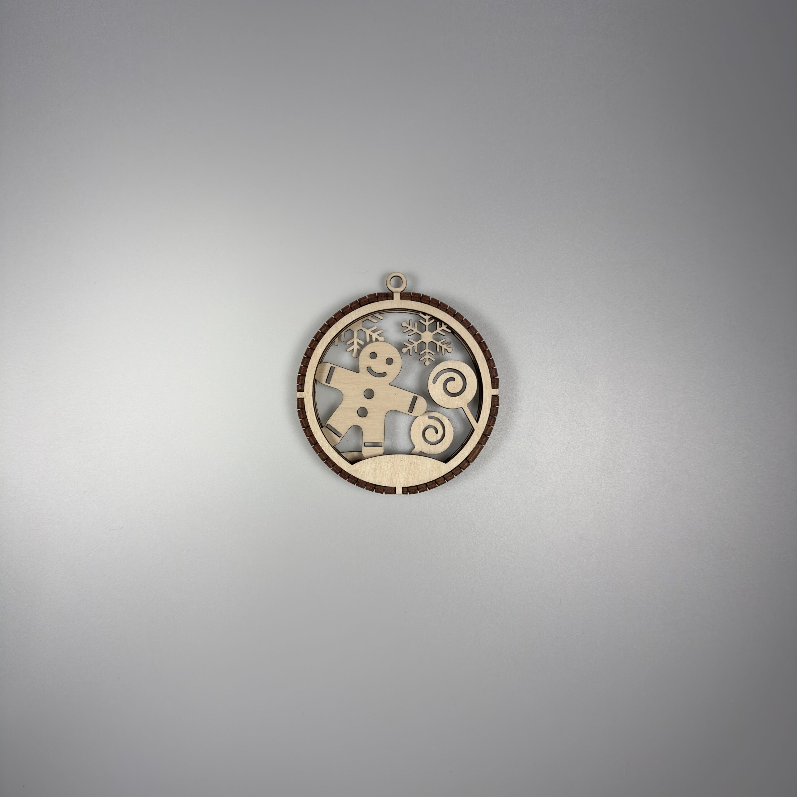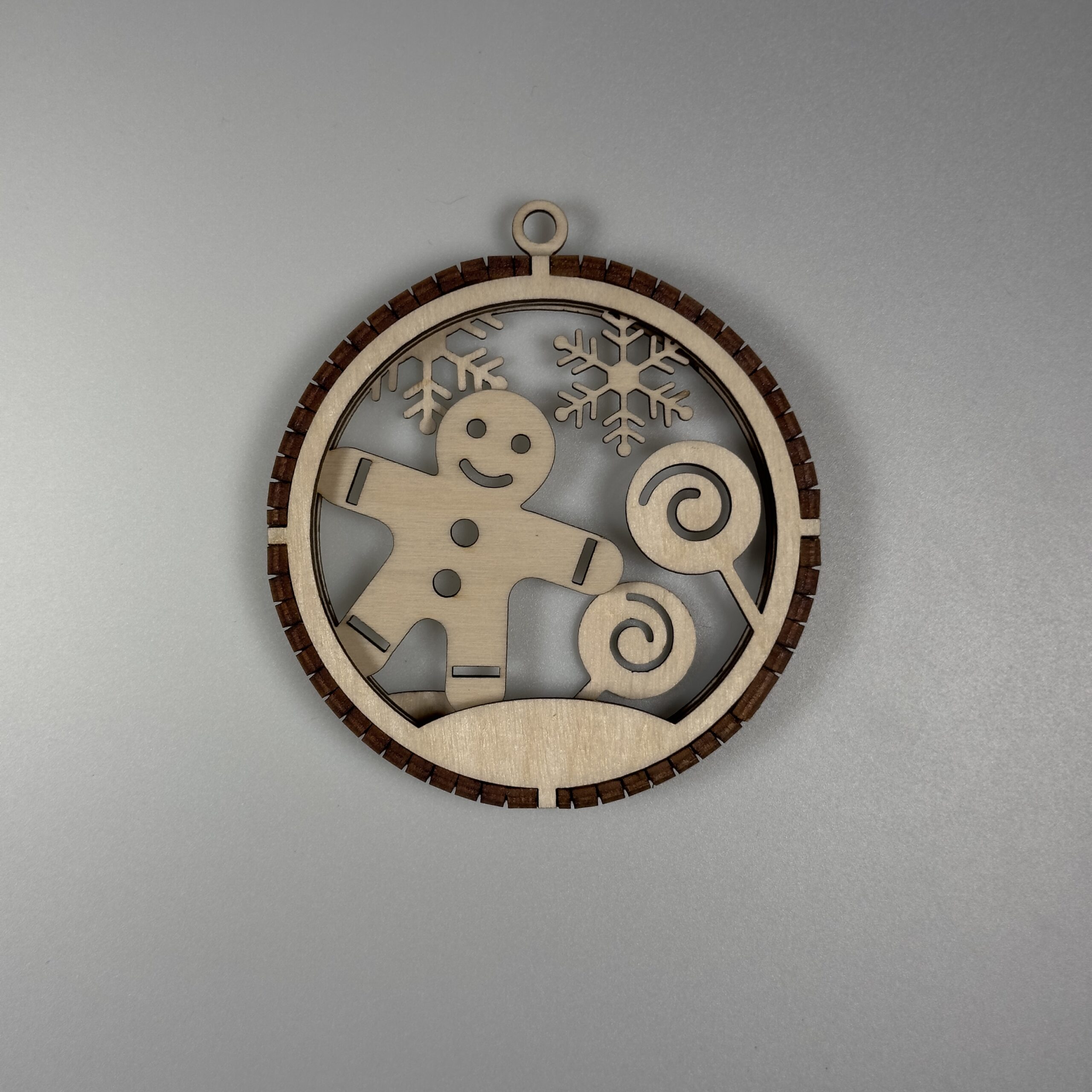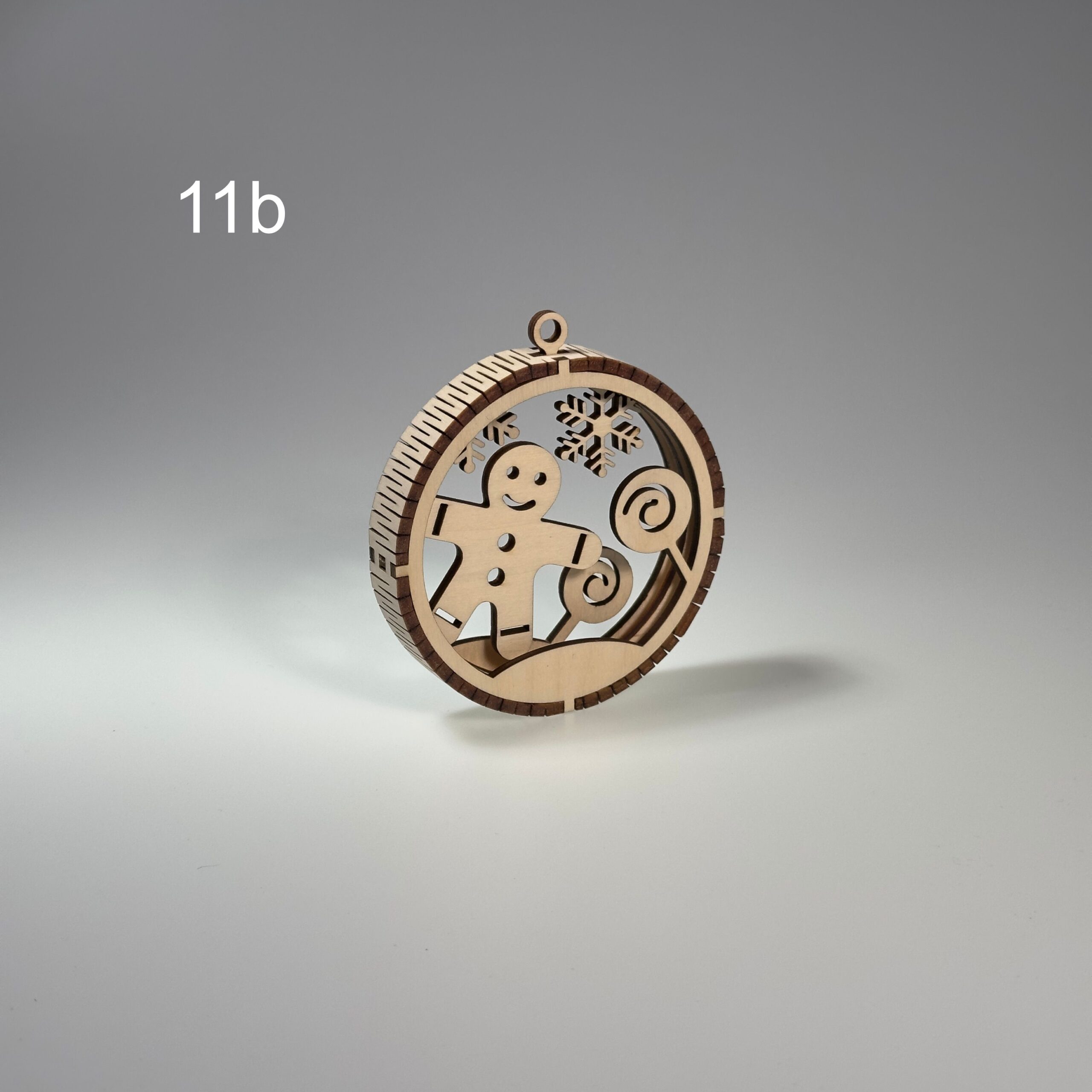 Elegancka, precyzyjnie wycięta ozdoba wykonana z naturalnej sklejki. Bombka posiada 3 warstwy które są połączone grzebieniem wyciętym z 3mm sklejki. W górnej części ozdoby znajduje się uchwyt który umożliwia łatwe zawieszenie na choice ścianie lub oknie za pomocą sznurka, wstążki oraz haczyka. Bomba jest staranie szlifowania dzięki czemu otrzymujemy gładką powierzchnie, dodatkowo pozbawioną nieestetycznych przepaleń.