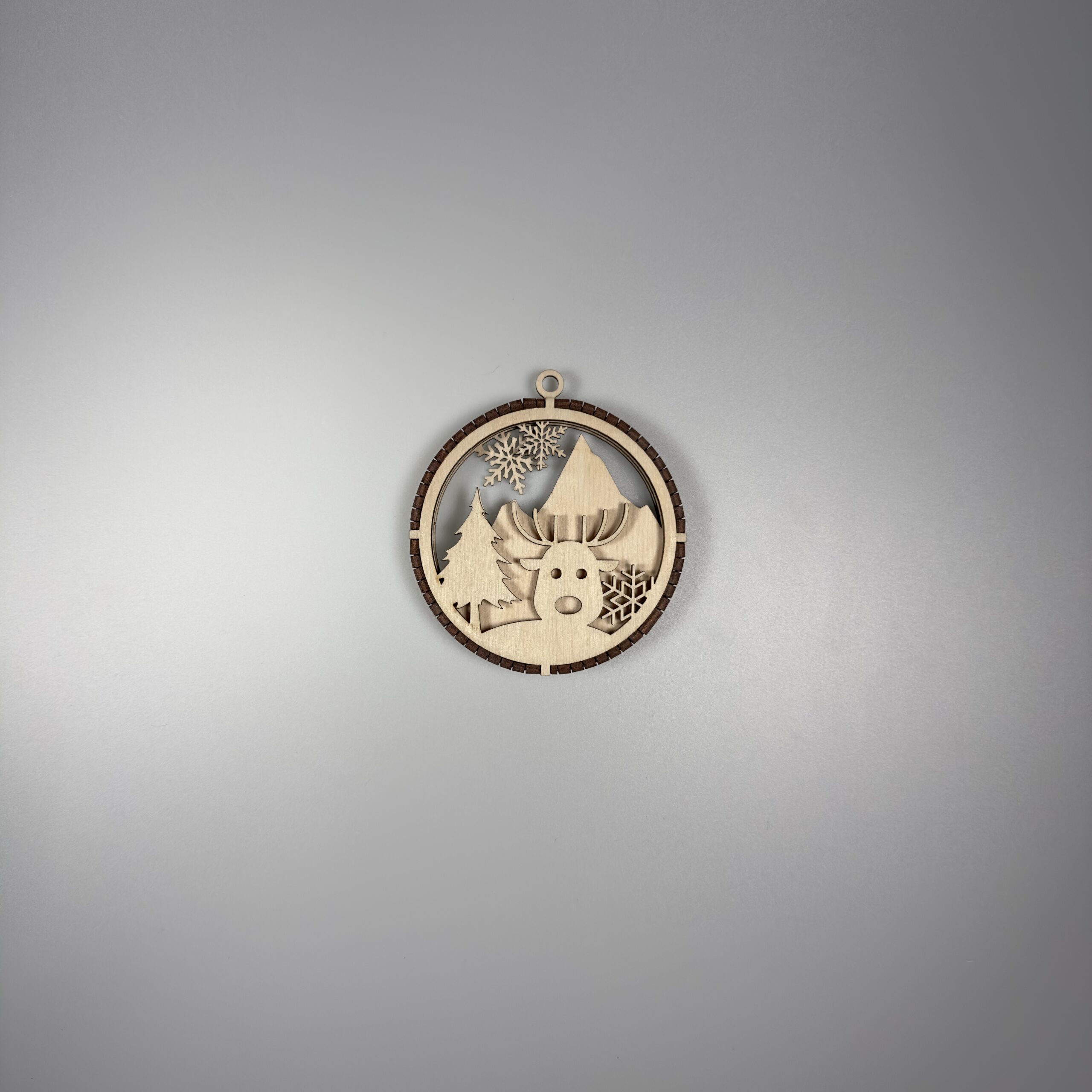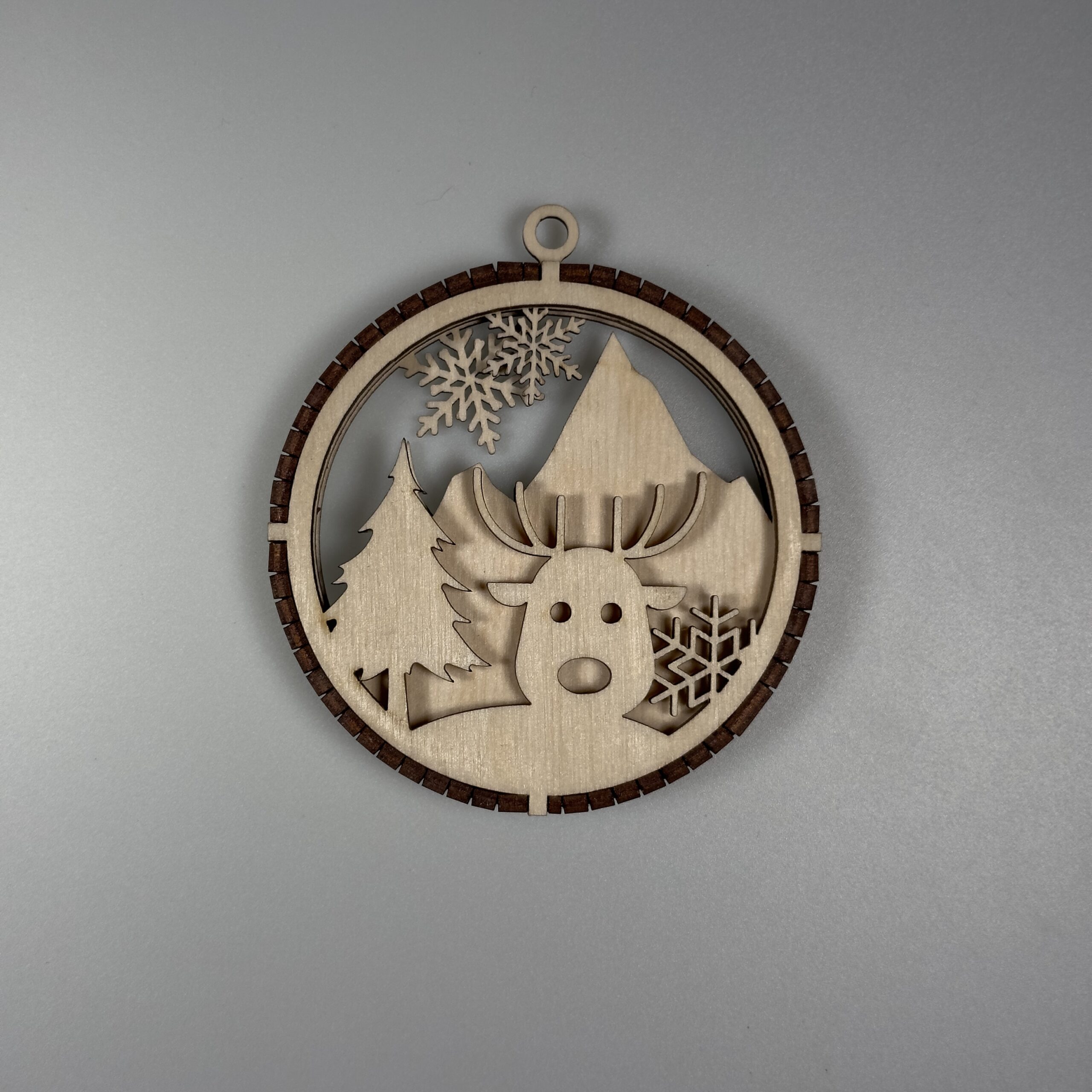 Elegancka, precyzyjnie wycięta ozdoba wykonana z naturalnej sklejki. Bombka posiada 3 warstwy które są połączone grzebieniem wyciętym z 3mm sklejki. W górnej części ozdoby znajduje się uchwyt który umożliwia łatwe zawieszenie na choice ścianie lub oknie za pomocą sznurka, wstążki oraz haczyka. Bomba jest staranie szlifowania dzięki czemu otrzymujemy gładką powierzchnie, dodatkowo pozbawioną nieestetycznych przepaleń.
