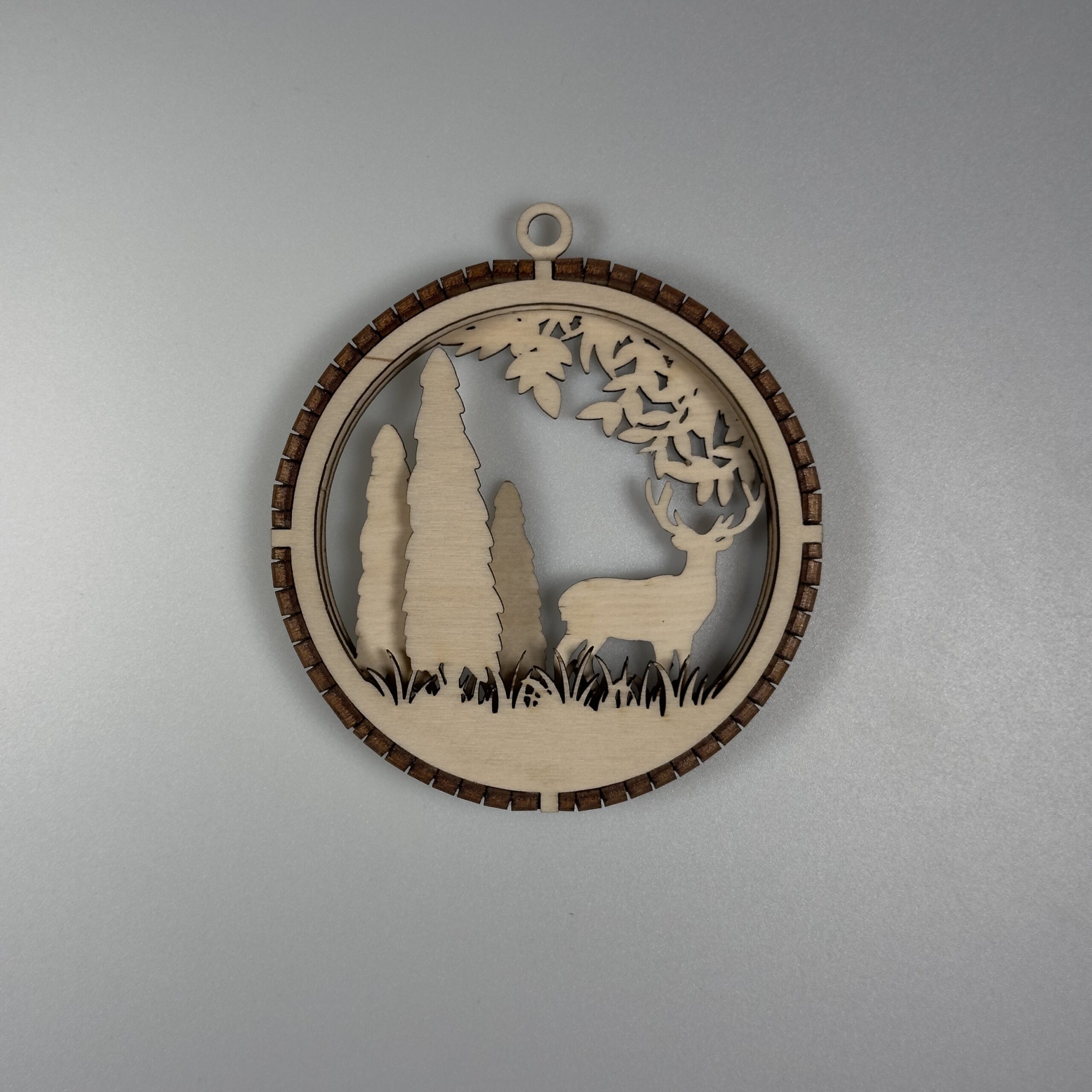 Elegancka, precyzyjnie wycięta ozdoba wykonana z naturalnej sklejki. Bombka posiada 3 warstwy które są połączone grzebieniem wyciętym z 3mm sklejki. W górnej części ozdoby znajduje się uchwyt który umożliwia łatwe zawieszenie na choice ścianie lub oknie za pomocą sznurka, wstążki oraz haczyka. Bomba jest staranie szlifowania dzięki czemu otrzymujemy gładką powierzchnie, dodatkowo pozbawioną nieestetycznych przepaleń.