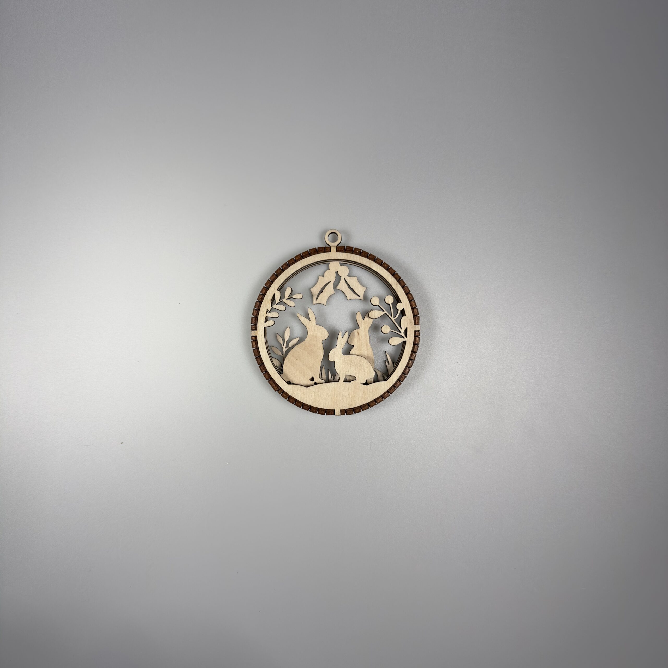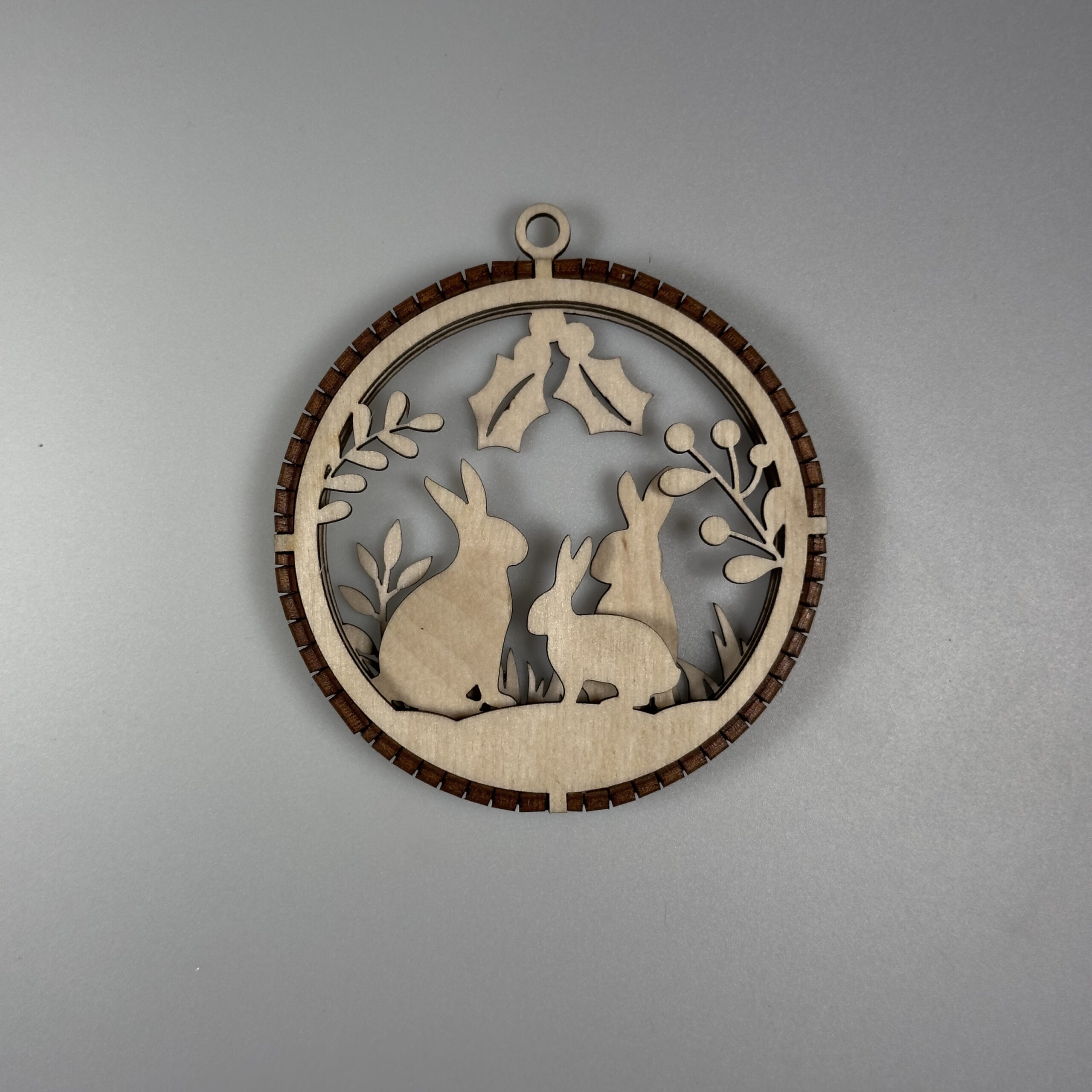 Elegancka, precyzyjnie wycięta ozdoba wykonana z naturalnej sklejki. Bombka posiada 3 warstwy które są połączone grzebieniem wyciętym z 3mm sklejki. W górnej części ozdoby znajduje się uchwyt który umożliwia łatwe zawieszenie na choice ścianie lub oknie za pomocą sznurka, wstążki oraz haczyka. Bomba jest staranie szlifowania dzięki czemu otrzymujemy gładką powierzchnie, dodatkowo pozbawioną nieestetycznych przepaleń.