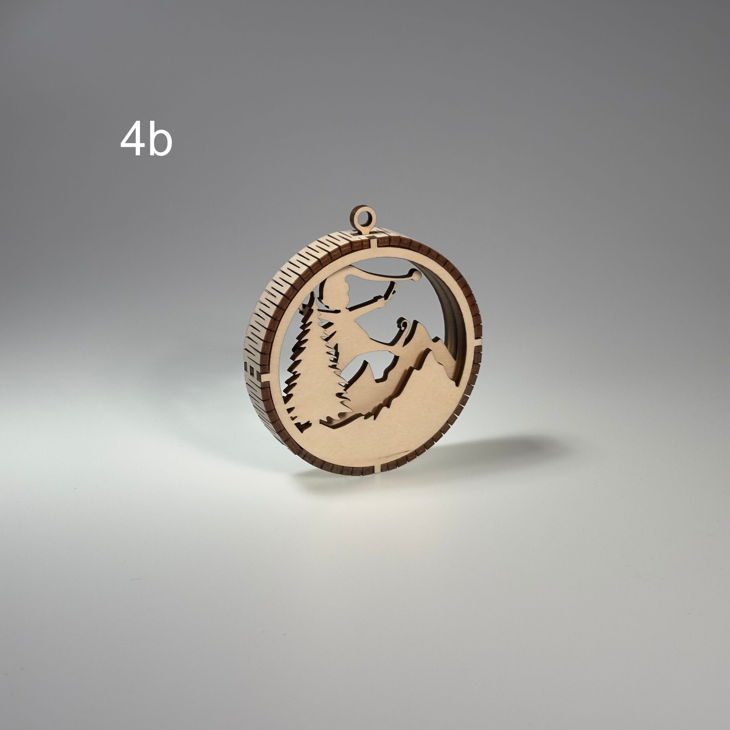 Elegancka, precyzyjnie wycięta ozdoba wykonana z naturalnej sklejki. Bombka posiada 3 warstwy które są połączone grzebieniem wyciętym z 3mm sklejki. W górnej części ozdoby znajduje się uchwyt który umożliwia łatwe zawieszenie na choice ścianie lub oknie za pomocą sznurka, wstążki oraz haczyka. Bomba jest staranie szlifowania dzięki czemu otrzymujemy gładką powierzchnie, dodatkowo pozbawioną nieestetycznych przepaleń.