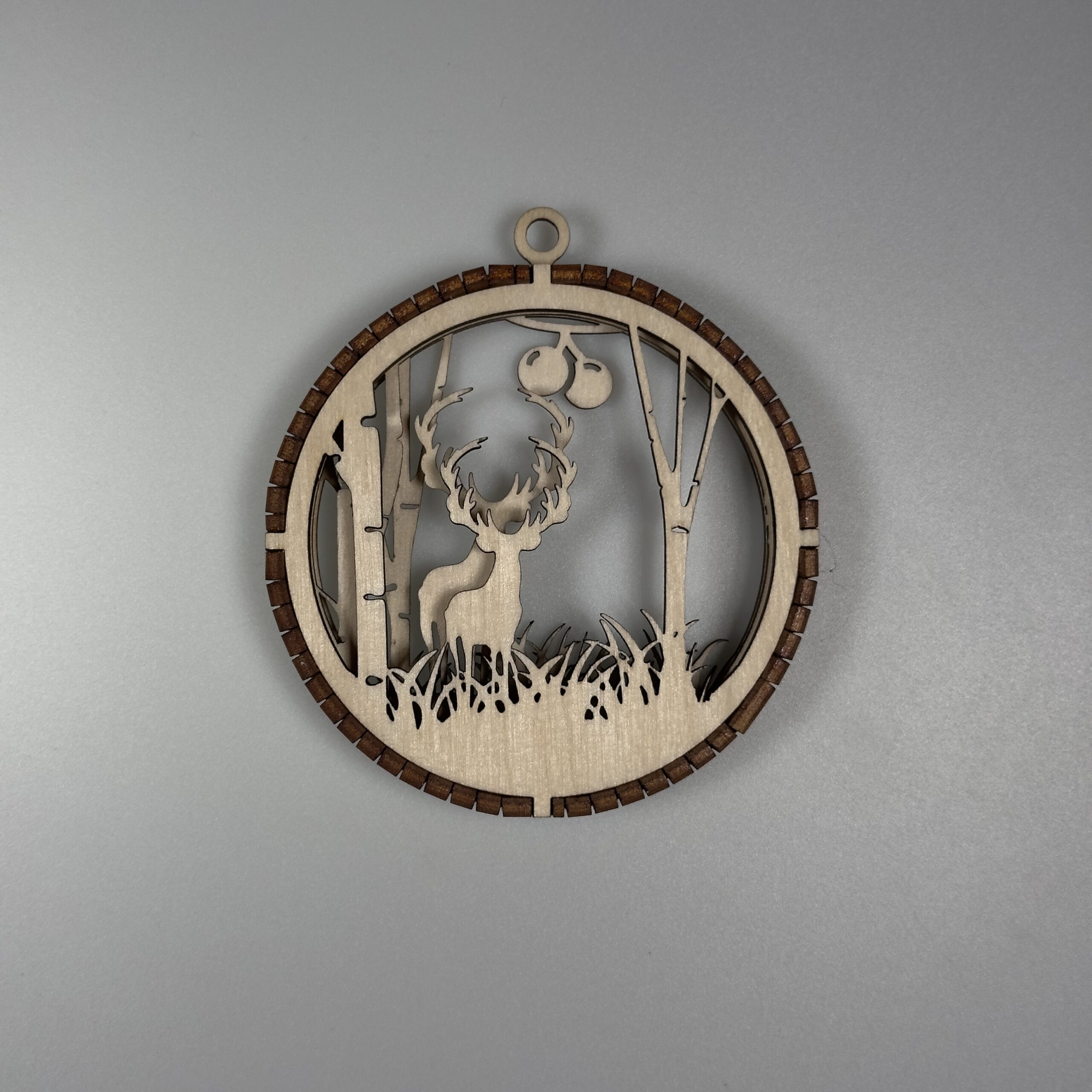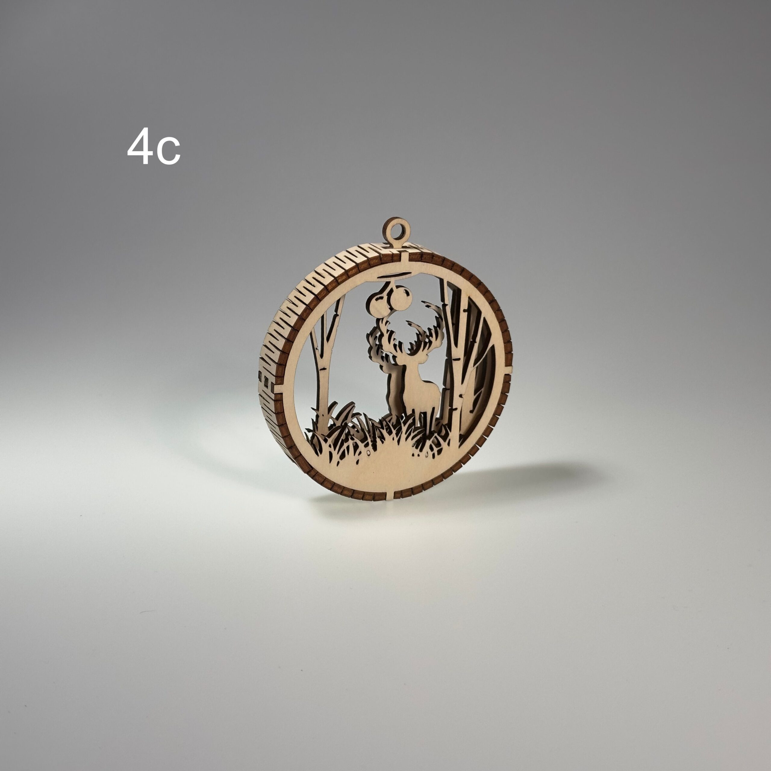 Elegancka, precyzyjnie wycięta ozdoba wykonana z naturalnej sklejki. Bombka posiada 3 warstwy które są połączone grzebieniem wyciętym z 3mm sklejki. W górnej części ozdoby znajduje się uchwyt który umożliwia łatwe zawieszenie na choice ścianie lub oknie za pomocą sznurka, wstążki oraz haczyka. Bomba jest staranie szlifowania dzięki czemu otrzymujemy gładką powierzchnie, dodatkowo pozbawioną nieestetycznych przepaleń.