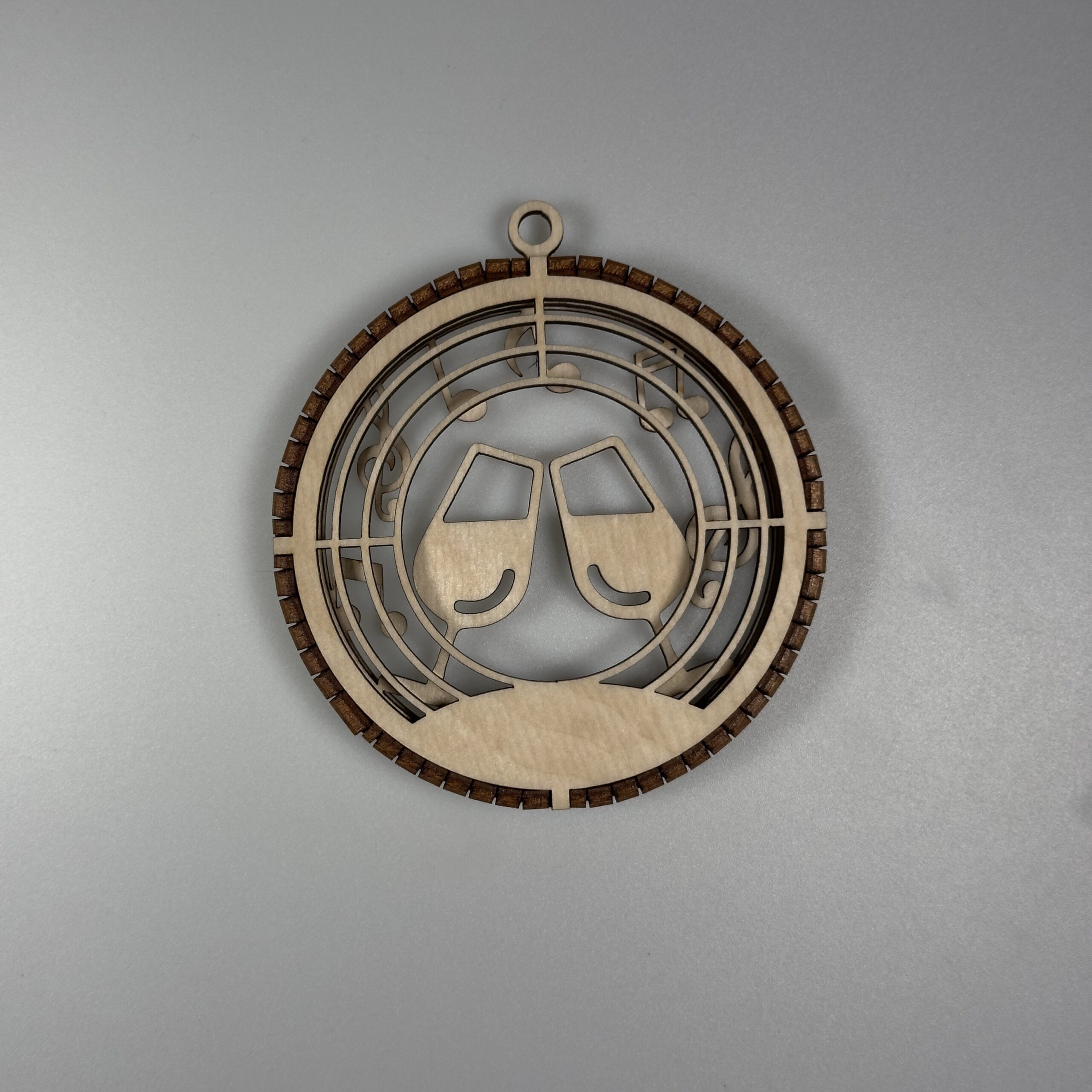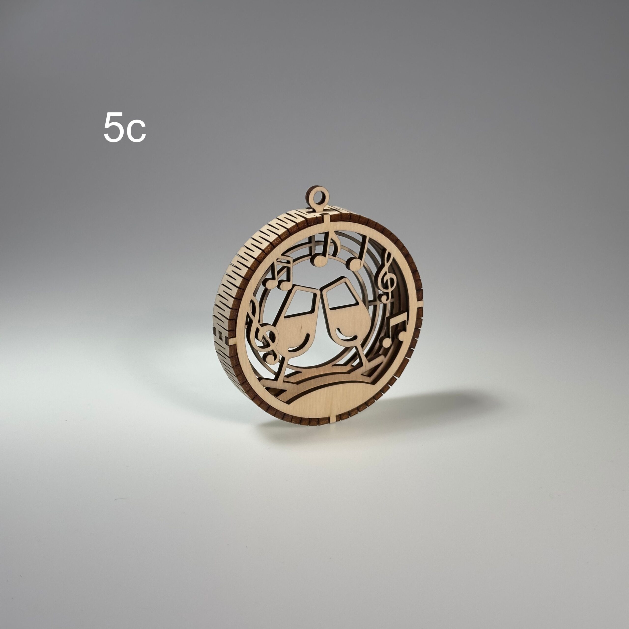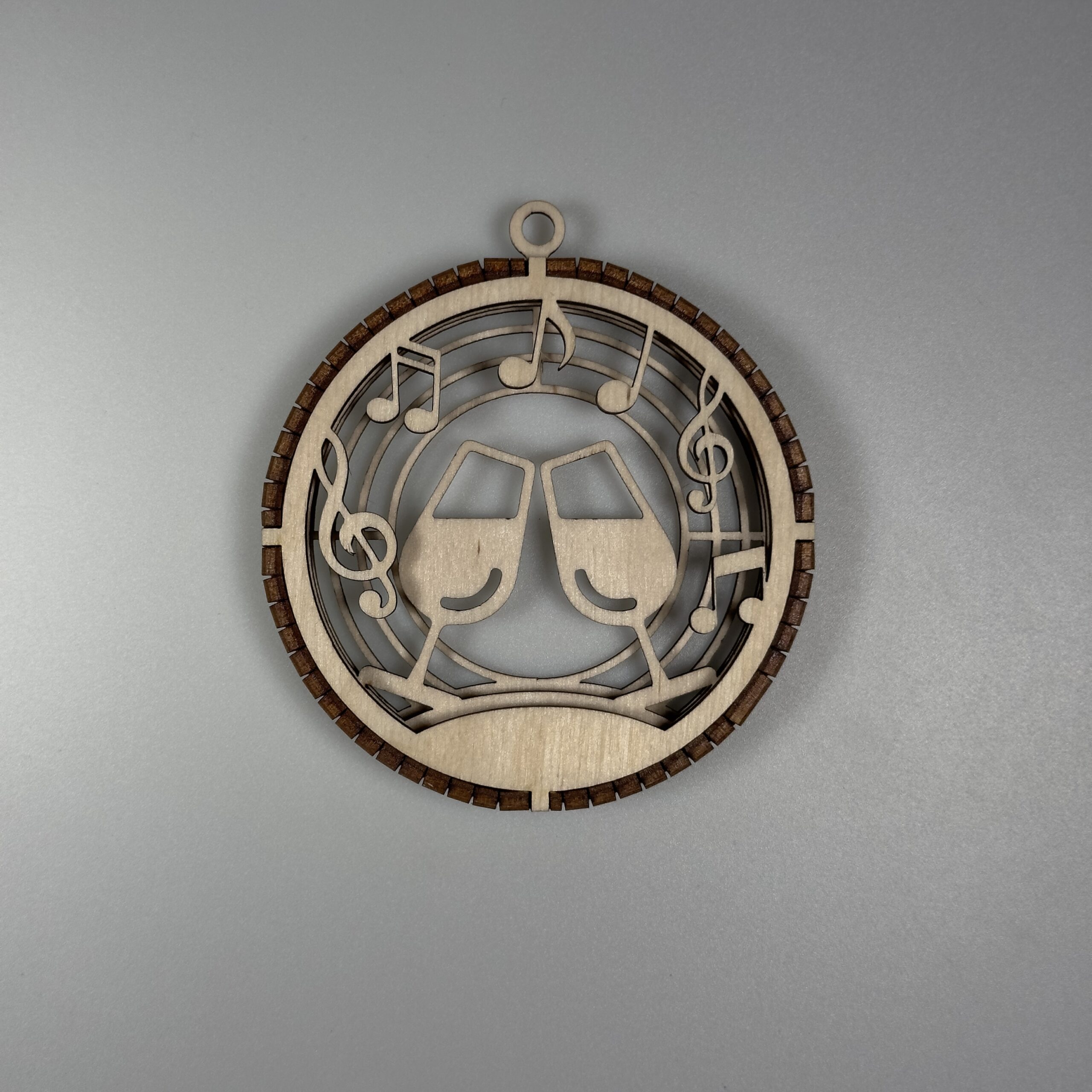 Elegancka, precyzyjnie wycięta ozdoba wykonana z naturalnej sklejki. Bombka posiada 3 warstwy które są połączone grzebieniem wyciętym z 3mm sklejki. W górnej części ozdoby znajduje się uchwyt który umożliwia łatwe zawieszenie na choice ścianie lub oknie za pomocą sznurka, wstążki oraz haczyka. Bomba jest staranie szlifowania dzięki czemu otrzymujemy gładką powierzchnie, dodatkowo pozbawioną nieestetycznych przepaleń.