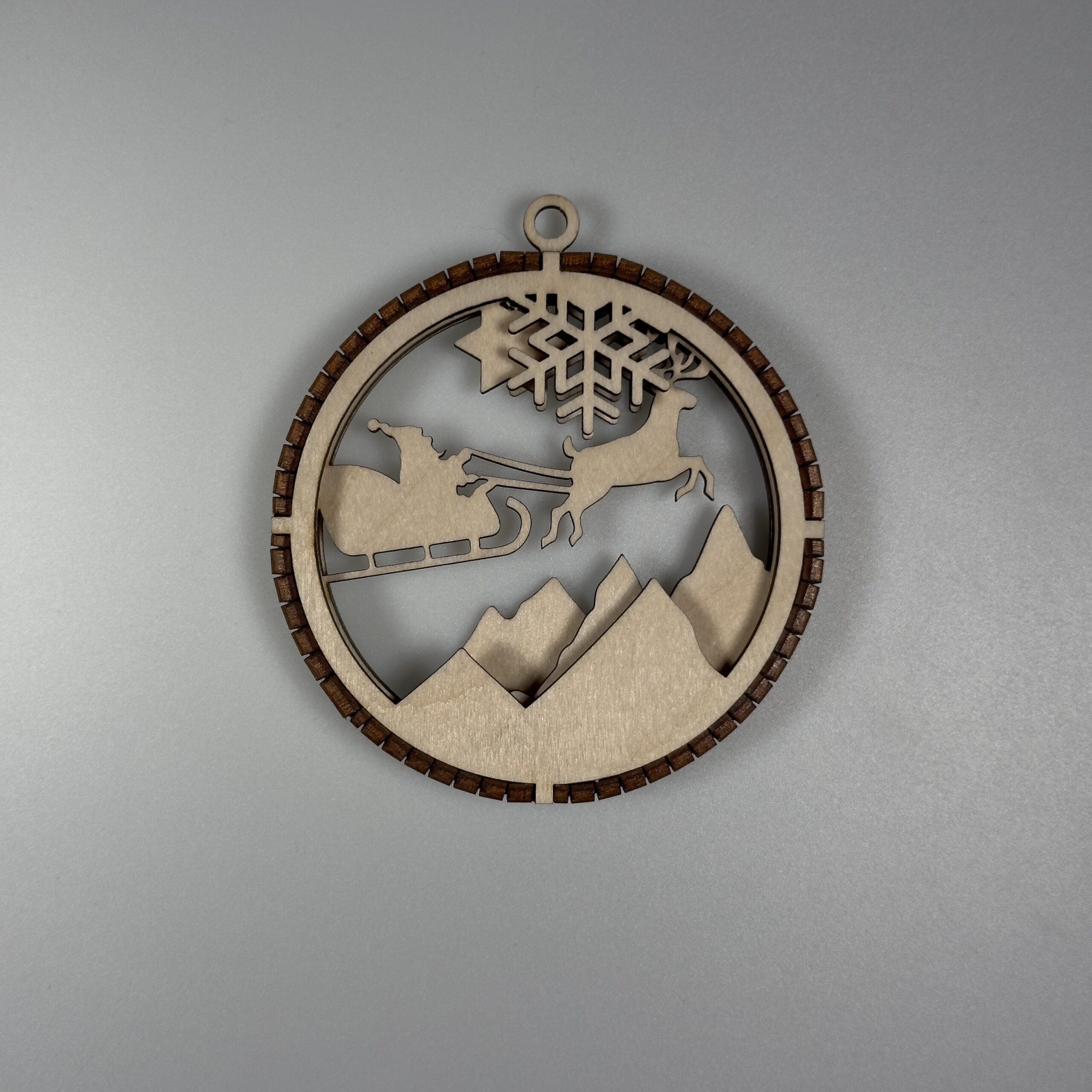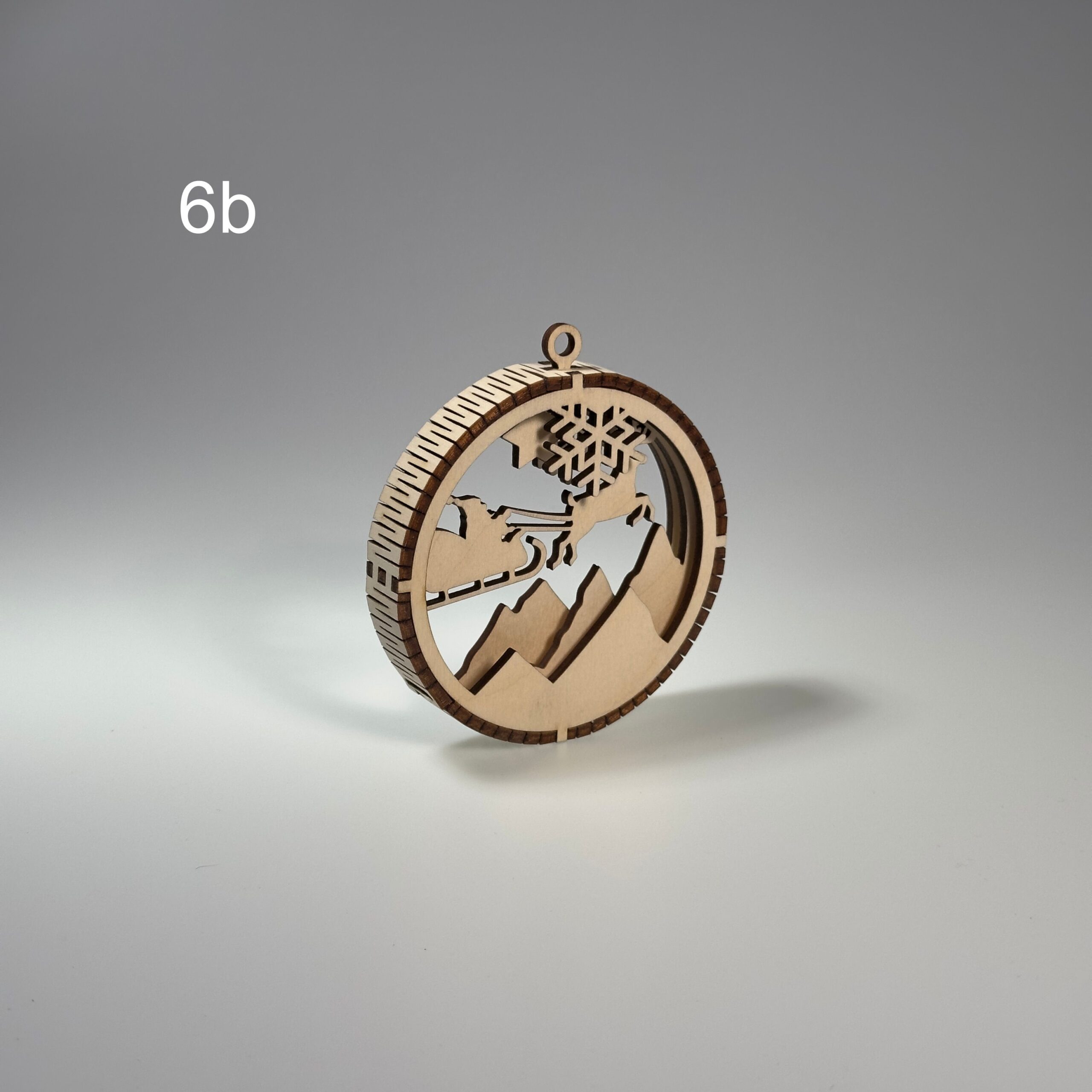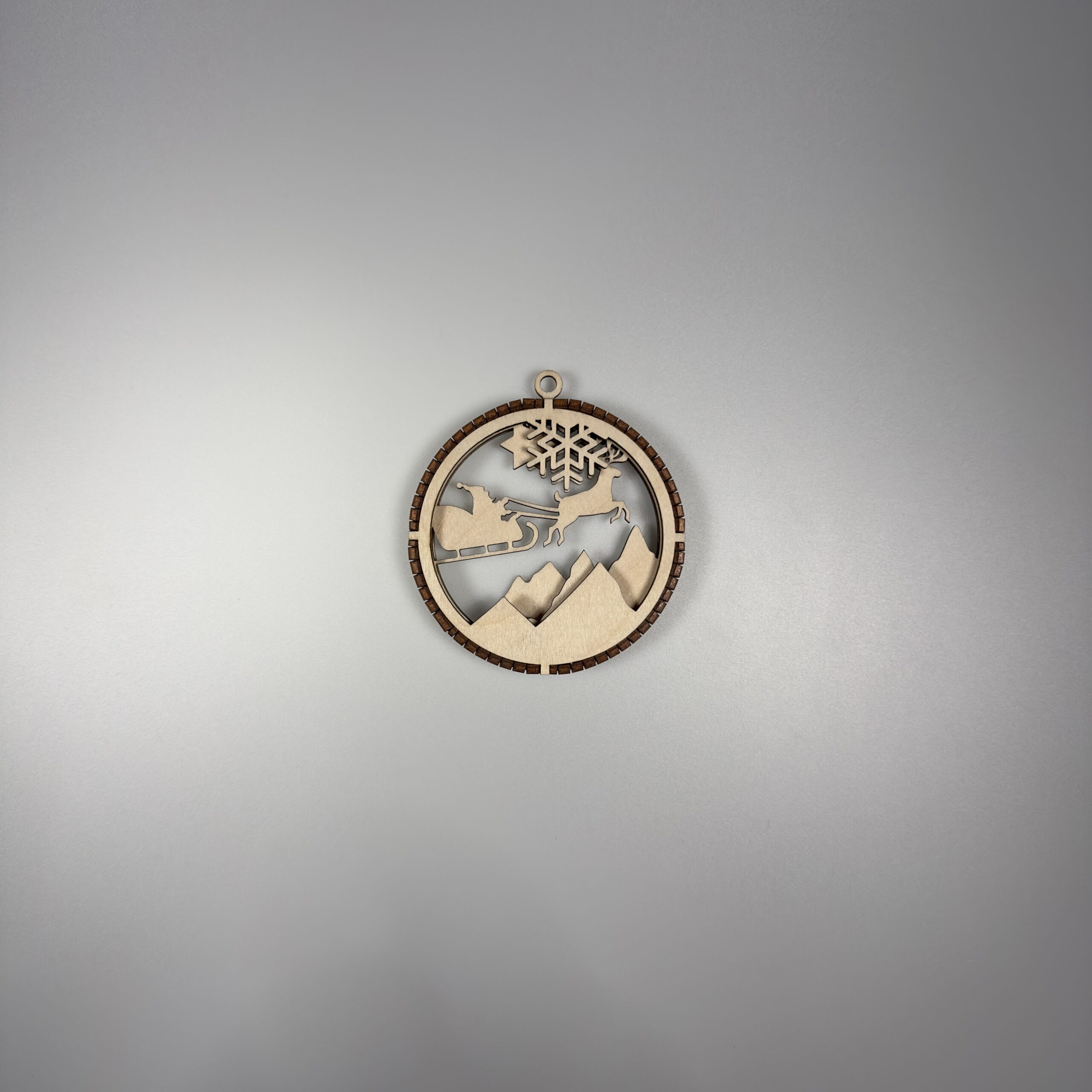 Elegancka, precyzyjnie wycięta ozdoba wykonana z naturalnej sklejki. Bombka posiada 3 warstwy które są połączone grzebieniem wyciętym z 3mm sklejki. W górnej części ozdoby znajduje się uchwyt który umożliwia łatwe zawieszenie na choice ścianie lub oknie za pomocą sznurka, wstążki oraz haczyka. Bomba jest staranie szlifowania dzięki czemu otrzymujemy gładką powierzchnie, dodatkowo pozbawioną nieestetycznych przepaleń.