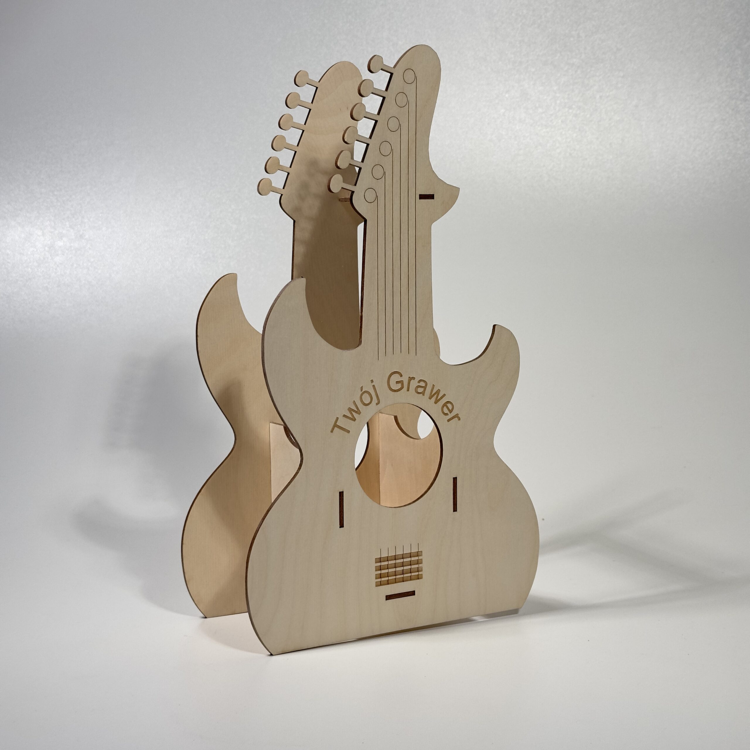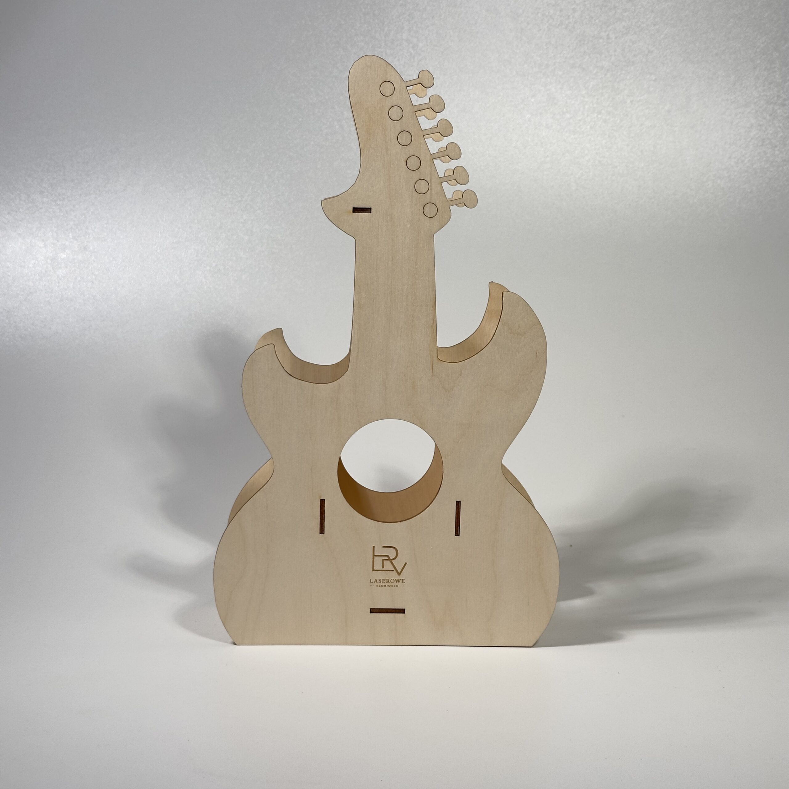 Oryginalny statyw na butelkę wykonany z naturalnej sklejki o grubości 3 mm. Kształt gitary sprawia, że świetnie sprawdza się jako prezent dla miłośników muzyki, na urodziny, imieniny, wieczór kawalerski lub inne okazje.